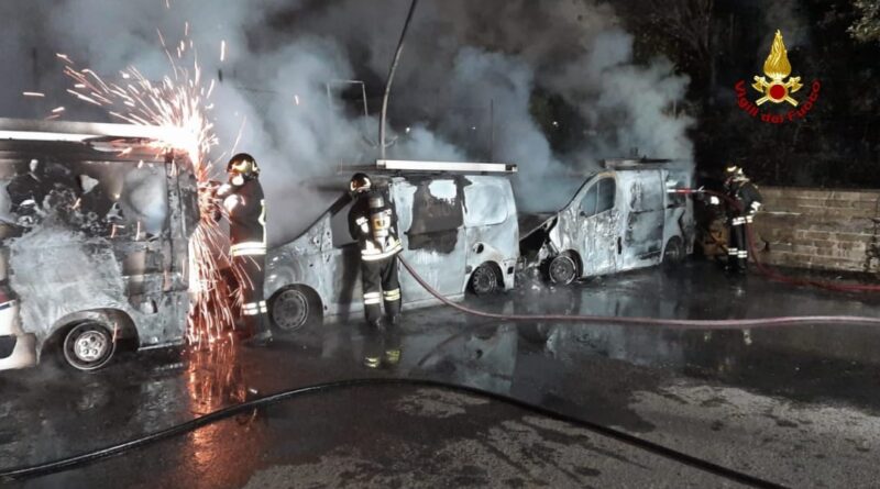 Tre furgoni sono stati avvolti dalle fiamme, questa notte, in un’area privata in via Appia Nord nel comune di Cisterna di Latina.