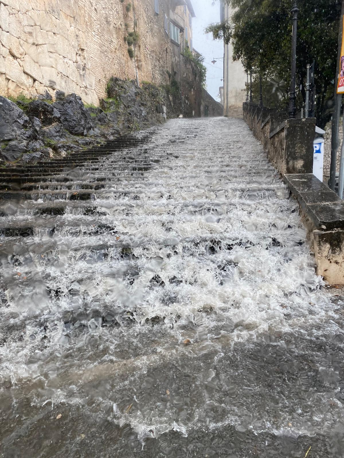 Gli improvvisi ed intensi acquazzoni a singhiozzo, ancora una volta, hanno riversato al suolo in poche ore notevoli quantità di acqua, facendo saltare vari tombini della rete fognaria, causando allagamenti di abitazioni private, nonché allagamenti nelle aree pianeggianti di talune piazze pubbliche, come per esempio piazza della Croce.
