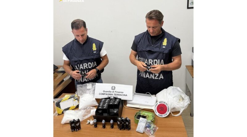 Tre chili di cocaina, 100 grammi di hashish e oltre 40 particolari dispositivi elettronici per l’inalazione di marijuana in forma liquida, sono stati sequestrati dalla guardia di Finanza di Latina.