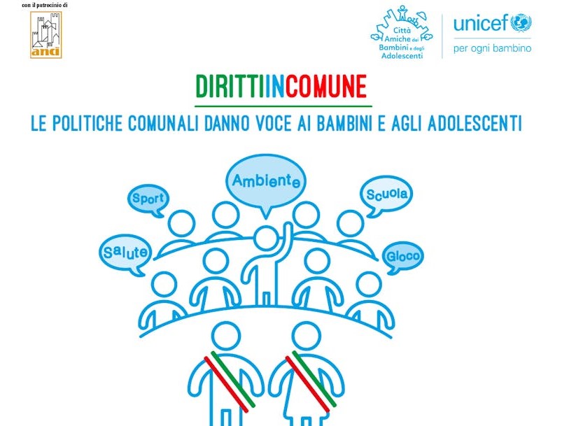 In occasione della ricorrenza della ratifica italiana della Convenzione Onu sui Diritti dell’Infanzia e dell’Adolescenza, avvenuta il 27 maggio 1991, torna anche quest’anno “Diritti in Comune”, l’iniziativa promossa da Unicef Italia e realizzata con il patrocinio dell’Associazione nazionale comuni italiani (Anci). L’obiettivo è sensibilizzare le amministrazioni comunali sull’importanza di mettere i diritti dei più giovani al centro delle politiche e delle decisioni pubbliche.