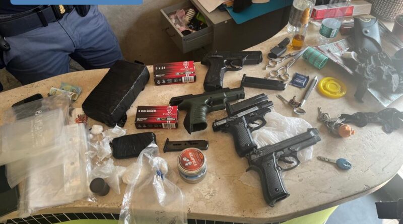Nascosto occultato all’interno di un’intercapedine del controsoffitto, all’interno di un involucro trasparente sotto vuoto è stato inoltre scoperto un ordigno artigianale verosimilmente una “bomba carta”, contenente polvere da sparo e miccia detonante. Oltre alle armi, gli investigatori hanno trovato anche la droga; diverse tipologie di sostanze stupefacenti già divise in dosi, in particolare hashish, del peso complessivo di oltre un chilo di droga e 7 dosi di crack, 5 buste trasparenti contenenti cocaina per un peso lordo pari a 86,27 grammi, 4 buste in nylon trasparente contenenti marijuana del peso al lordo di 56,20 grammi e ulteriore sostanza resinosa di colore marrone, hashish, del peso al lordo di 8,20 grammi.