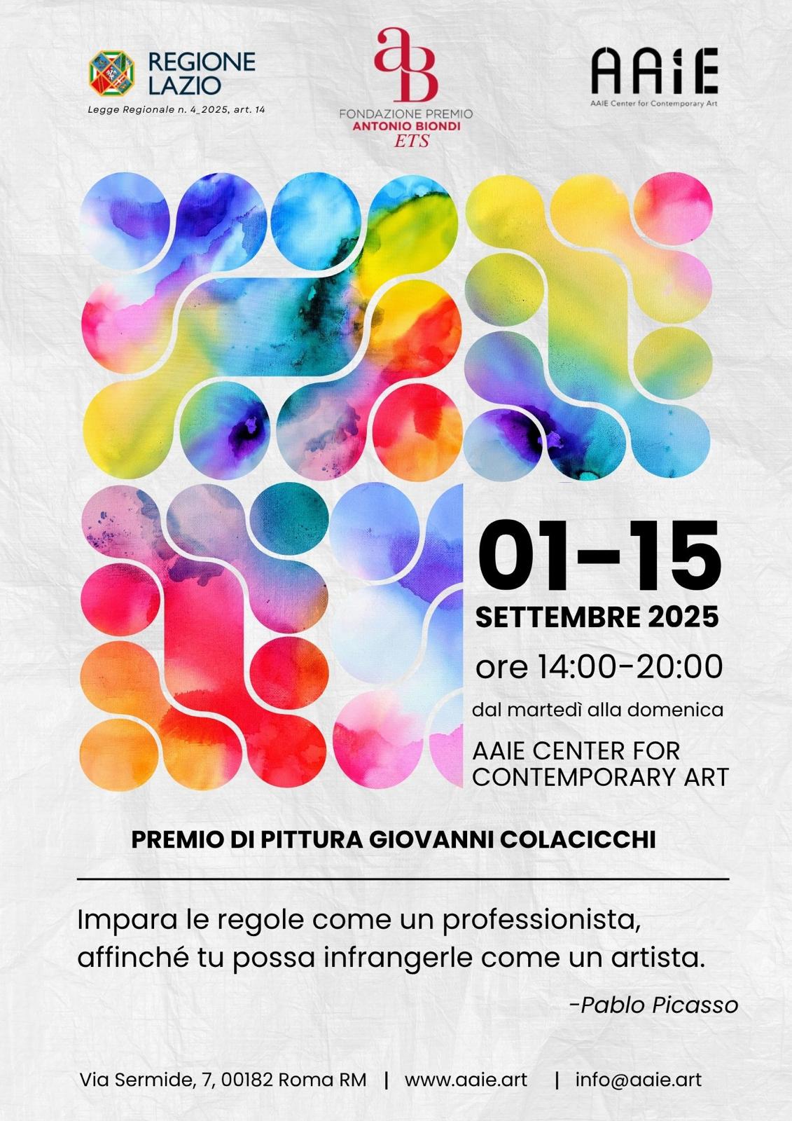 L’esposizione di arte contemporanea del Premio di pittura Giovanni Colacicchi si sposterà, dal primo al 15 settembre prossimi, a Roma, presso AAIE Center for Contemporary Art, al civico 7 di via Seramide.