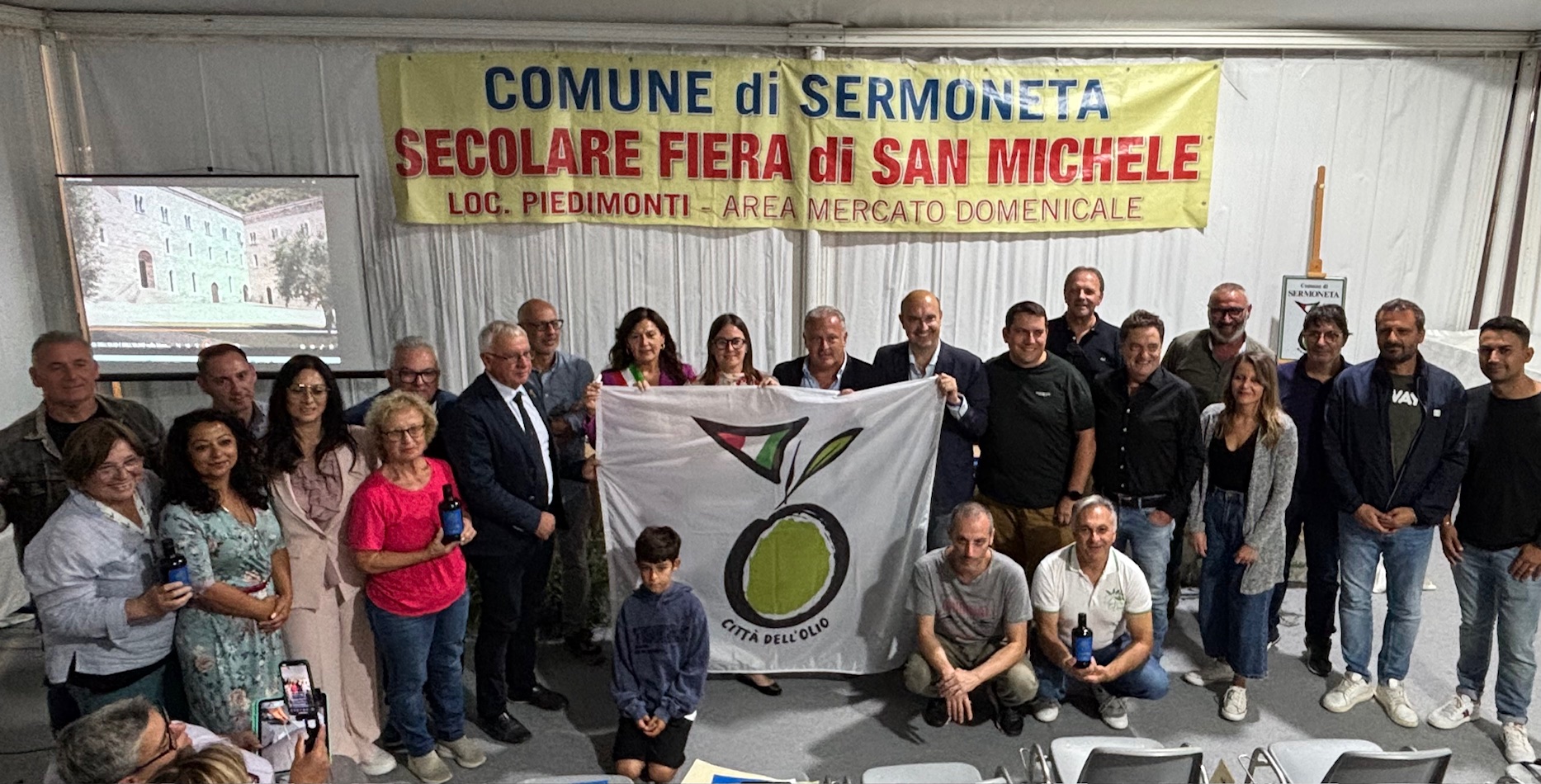 Sempre in occasione della secolare fiera di San Michele, il Comune di Sermoneta ha ricevuto la bandiera dell’associazione nazionale Città dell’olio, di cui è socio da qualche mese. A consegnare il vessillo sono stati Alfredo D’Antimi vice presidente nazionale dell’associazione, e il coordinatore provinciale Severino Marrocco, vicesindaco di Lenola.