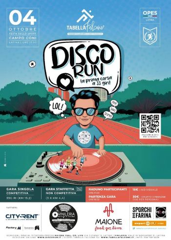 LATINA – Due giornate di sport e musica, nell’ambito della “Giornate dello sport” (4 e 5 ottobre) si svolgerà , il 4 ottobre, la Disco Run, la prima corsa a 33 giri che unisce sport, musica ed emozioni in un format unico. L’evento è organizzata con il supporto di Opes.