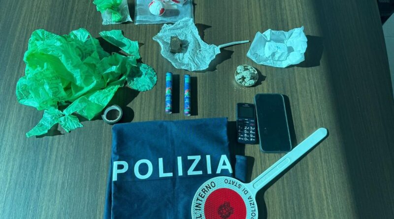 Gli agenti della Squadra Anticrimine del Commissariato hanno eseguito una perquisizione presso l’abitazione della donna. Durante il controllo, i poliziotti hanno rinvenuto due sigarette elettroniche riportanti la dicitura “THC”, circa 29 grammi di hashish, 6 grammi di marijuana, oltre 30 grammi di polvere bianca presumibilmente cocaina e vario materiale per il confezionamento delle dosi, tra cui nastro isolante, ritagli di plastica e sostanze da taglio.