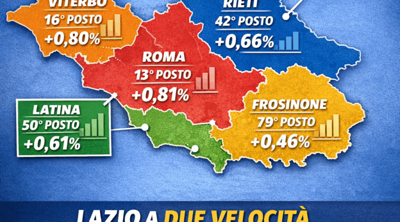 Il confronto con i territori leader evidenzia un divario ancora marcato: Varese, Bologna e Reggio Emilia guidano la graduatoria con tassi di crescita prossimi o superiori all’1 per cento, confermando la centralità della manifattura avanzata e dell’export nei processi di sviluppo. Nel Lazio, invece, Roma si posiziona al 13° posto con una crescita dello 0,81 per cento, trainando l’economia regionale e contribuendo al buon risultato complessivo della regione, seconda a livello nazionale.