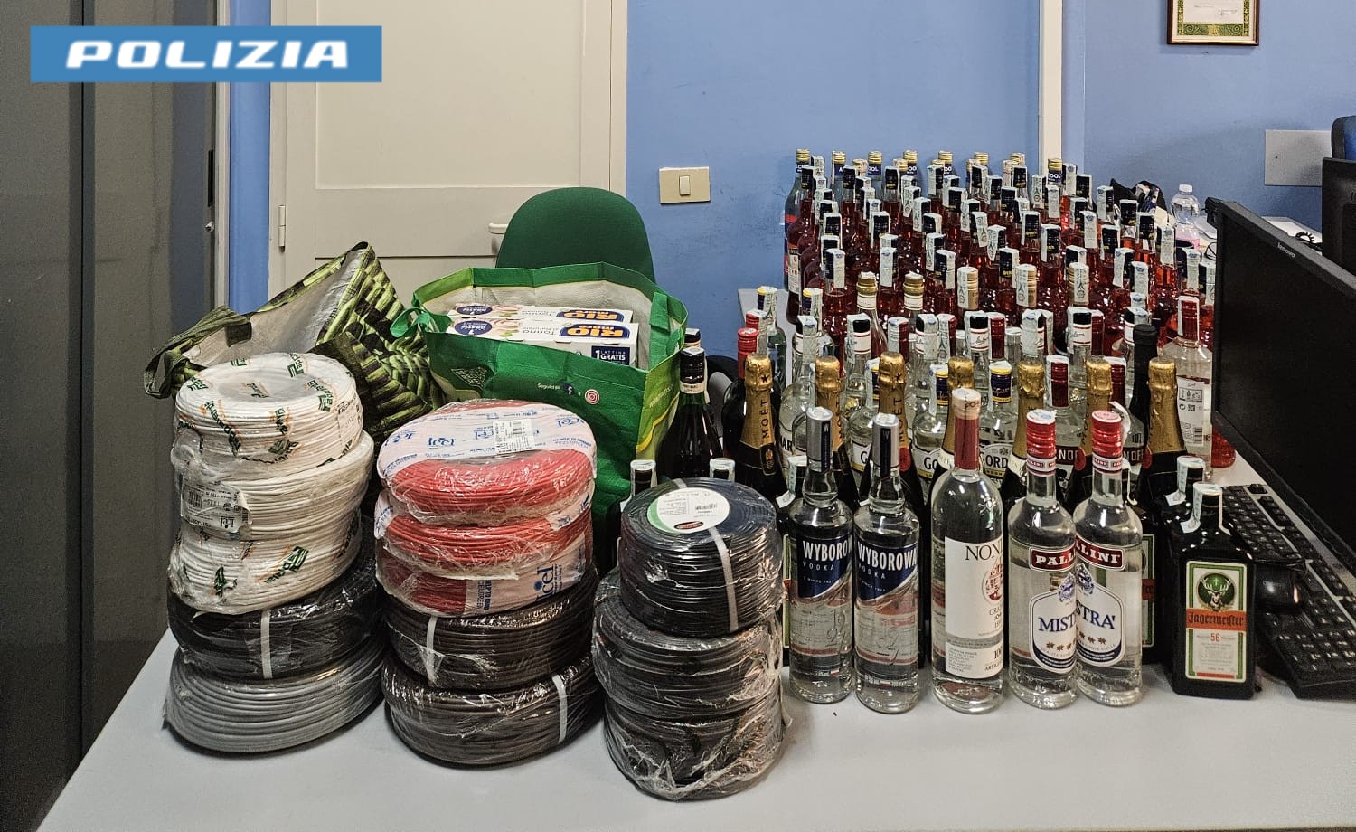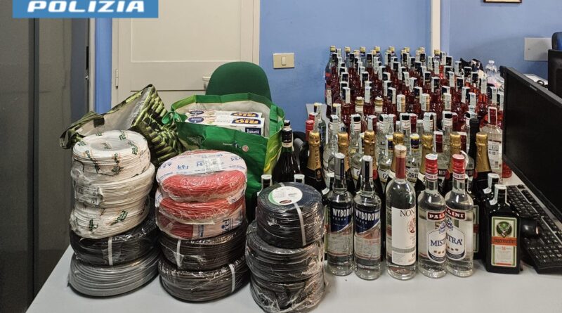 Decine di bottiglie di alcool e matasse di filo elettrico, due denunciati per ricettazione a Latina